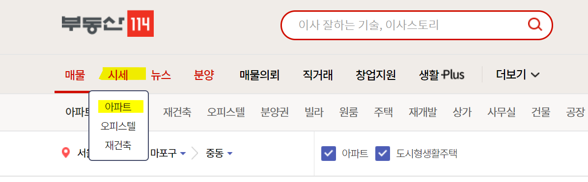 부동산 114 아파트 시세 매몰 조회 하는 방법 체크 하기