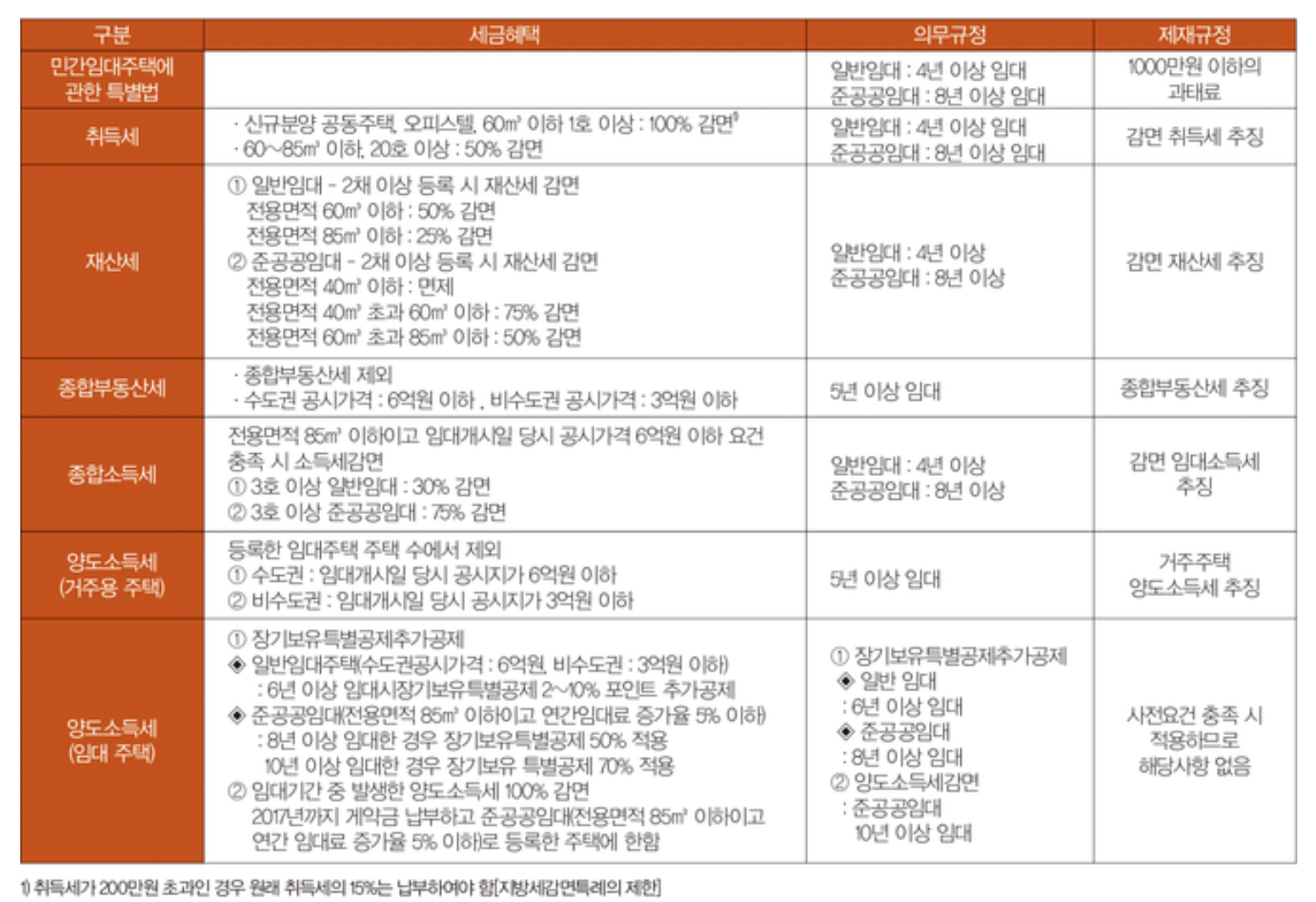 주택임대사업자 혜택 사진의 도표를 보면서 확인해보겠습니다.
