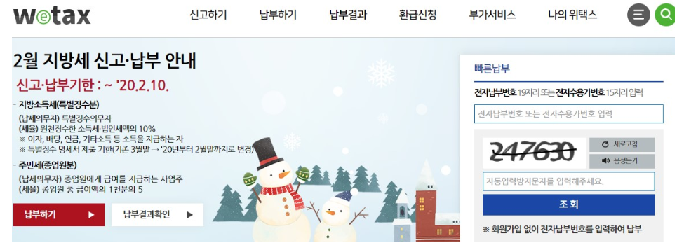 재산세 납부내역 조회 위해서 위택스로 이동하기