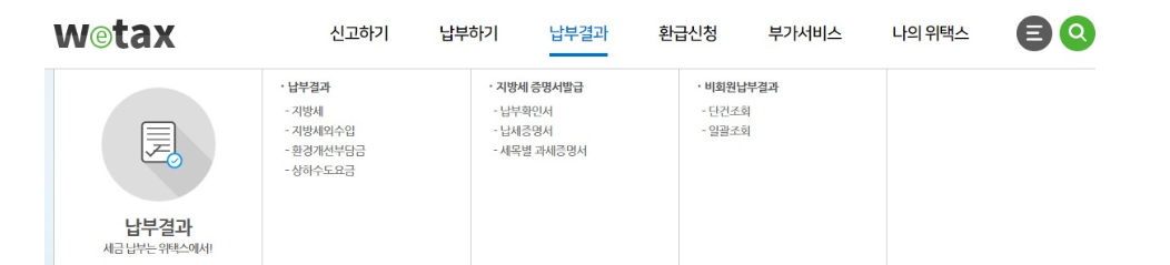 일단 여러분께서 위의 위택스에서 납부내역 조회했던 것처럼 이동하여 그 부분에서 증명서 발급 부분이 있는데요. 지방세 납부 쪽 보시면 있습니다. 참고해주세요.