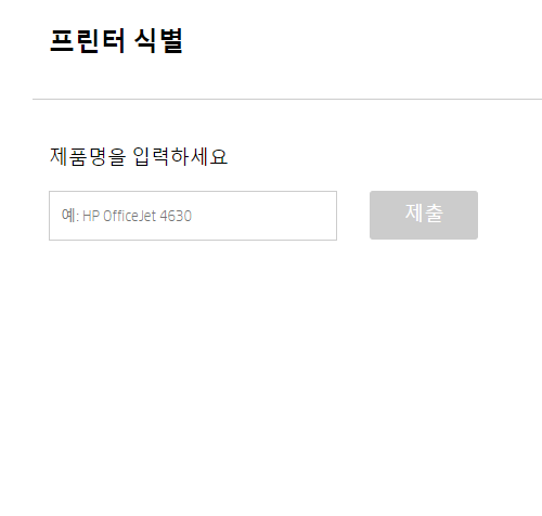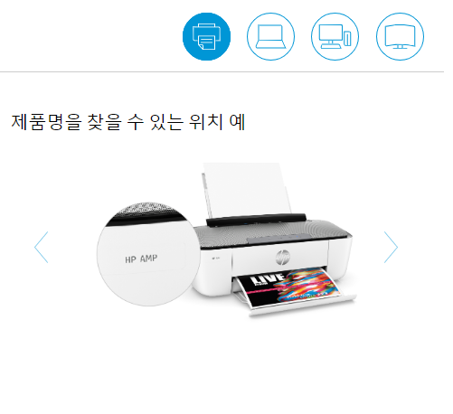 그러면 일단 hp 프린터 식별 부분이 나옵니다. 그리고 제품명을 눌러야하는데요. 자신의 프린터 앞이나 아니면 밑부분에서 모델명을 확인하는 것이 필요로 합니다.