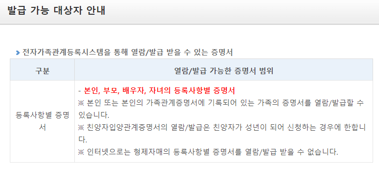 ▲ 참고로 발급신청부분이 있습니다. 대상자 안내가 있습니다. 증 증명서 범위가 있고 이런 사람이외에는 열람하거나 출력을 할수 없다고 하겠습니다. 꼭 괜히 자신이 아닌데도 불구하고 발급하고 열람했다가 처벌받지 않으시기를 바라겠습니다.