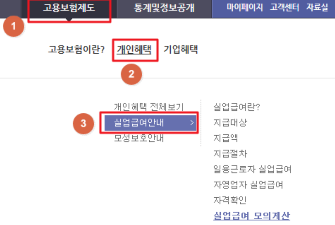 일단 개인 혜택에서 실업급여 안내로 들어가신 후에 그리고 실업급여 자격확인 이후에 보시면 더 정확한 것을 보고 알 수가 있습니다.