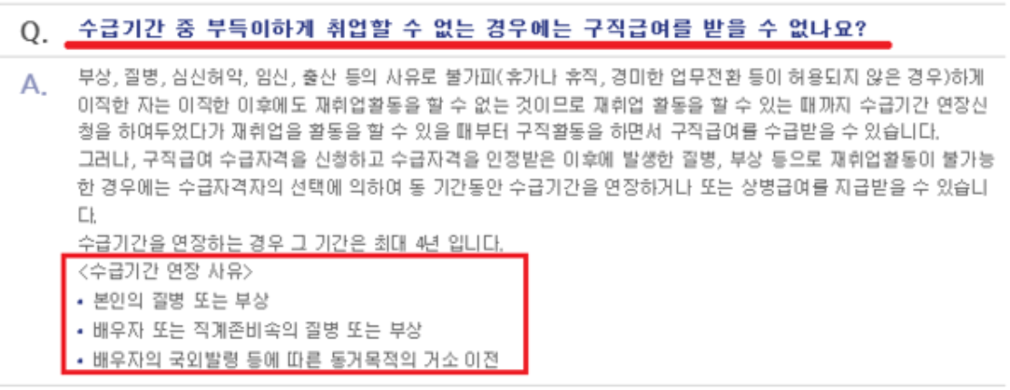 확실히 실업급여 수급기간 연장 부분은 쉽게는 할 수가 없고 정말 본인의 질병또는 부상이 있는 경우에 신청을 할수가 있고 또한 배우자 또는 직계존비속의 질병 또는 부상으로 내가 살펴보아야 하는 경우가 필요로 합니다. 마지막으로는 배우자의 국외 발령이나 동거 목적의 거소이전 등이 발생된 경우가 가능합니다. 즉 그리고 그 기간은 최대 4년이라고 밝히고 있습니다.