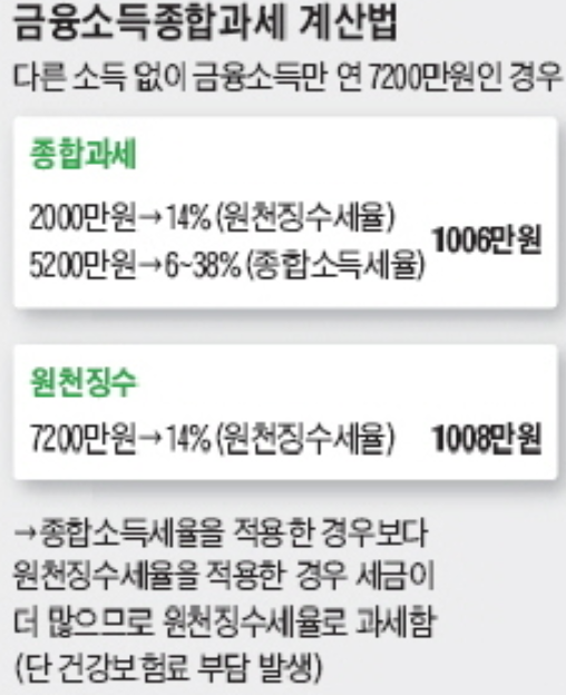그리고 일단 금융소득 종합과세 대상은 일단 2천만 원 이하인 경우는 14% 납부하면 이상이 크게 없이 신경을 안 써도 됩니다. 하지만 그 이상이 넘어가게 되는 경우가 바로 종합소득 과세 부분을 신경 쓰고 체크해야 합니다. 그렇기 때문에 정확히 한번 체크해주시는 게 중요하고요.