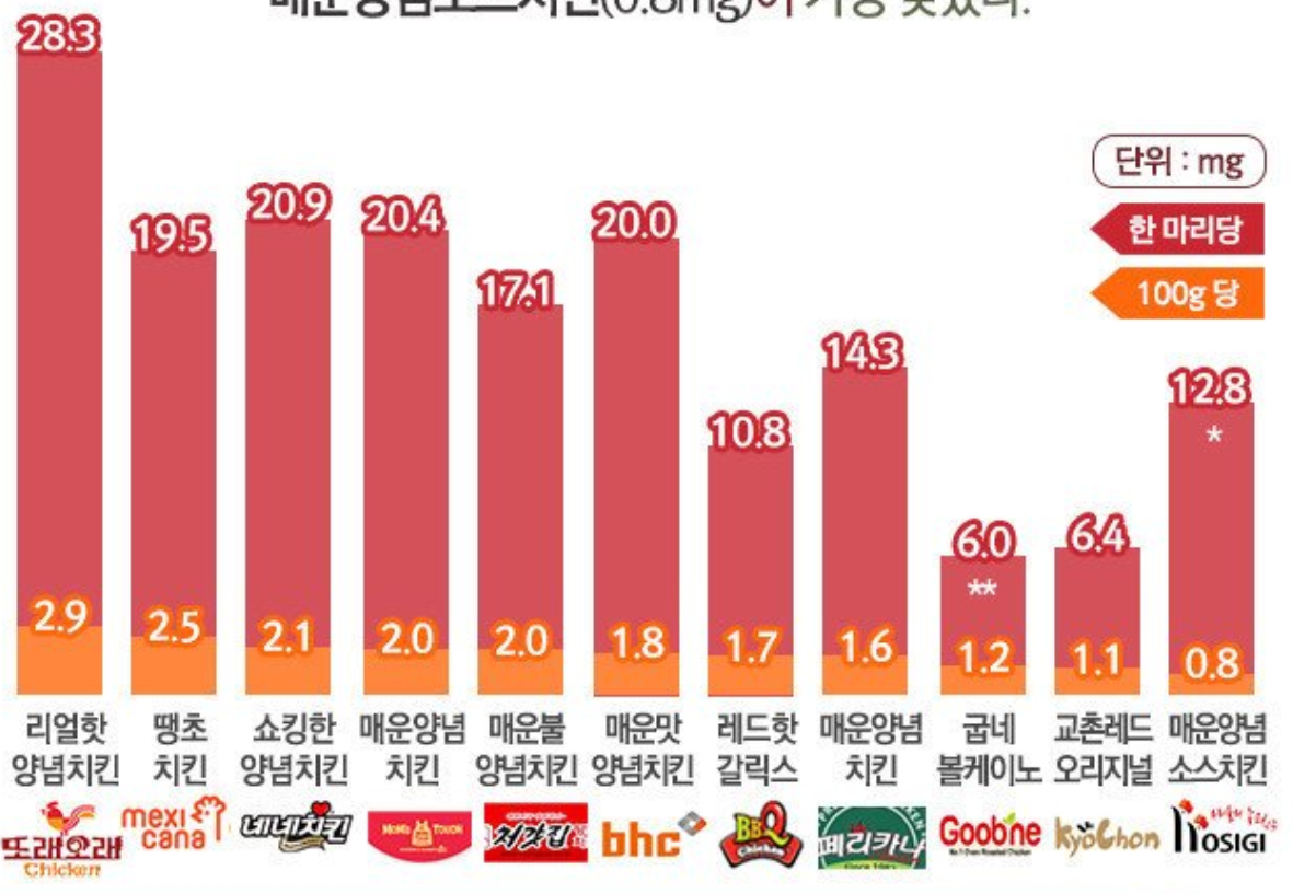 오늘 함께 치킨 순위 알아보았는데요. 추가적으로 어느맛이 매운 치킨인제 도표를 보고 한번 넘어가보도록 하겠습니다.
