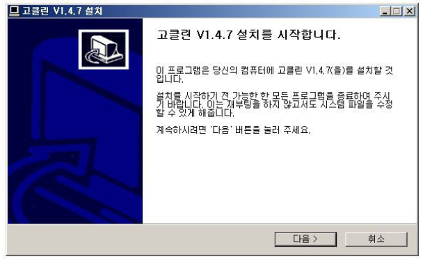 고클린 무료다운로드 방법으로 일단 고클린 다운로드 메뉴를 클릭하면 그냥 받을수가 있습니다. 그리고 받아진 설치 파일을 실행을 합니다.