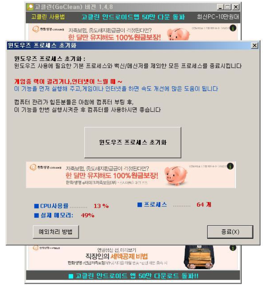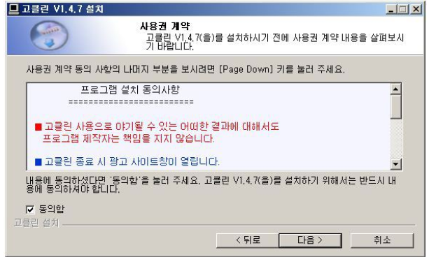 동의 함을 체크 학 넘어가도록 하빈다. 그리고 고클린 종료시에는 광고가 뜬다고 나옵니다. 좋은 프로그램 무료로 다운로드 받아 쓰는데 이해하고 넘어가주시면되겠습니다.