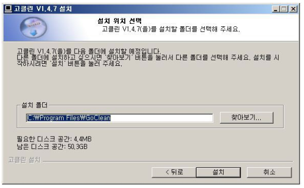 그리고 일단 프로그램파일스 폴더에 설치가 됩니다. 고클린 폴더를 만들어서 생성을 하죠 그냥 이런부분도 다음 설치 부분을 클릭해서 넘어갑니다.