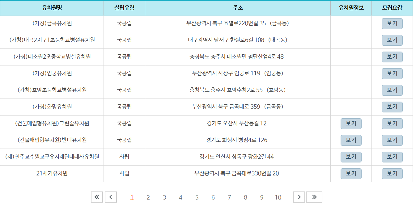 예를 들어서 유치원명이나 설립유형 보고 확인하실 수가 있습니다. 그리고 일단 가장 검색이 좋은 것은 자신이 살고 잇는 시도만 검색하셔서 살펴보시면 훨씬 찾기 쉬울 것입니다. 참고하시면 되겠습니다.