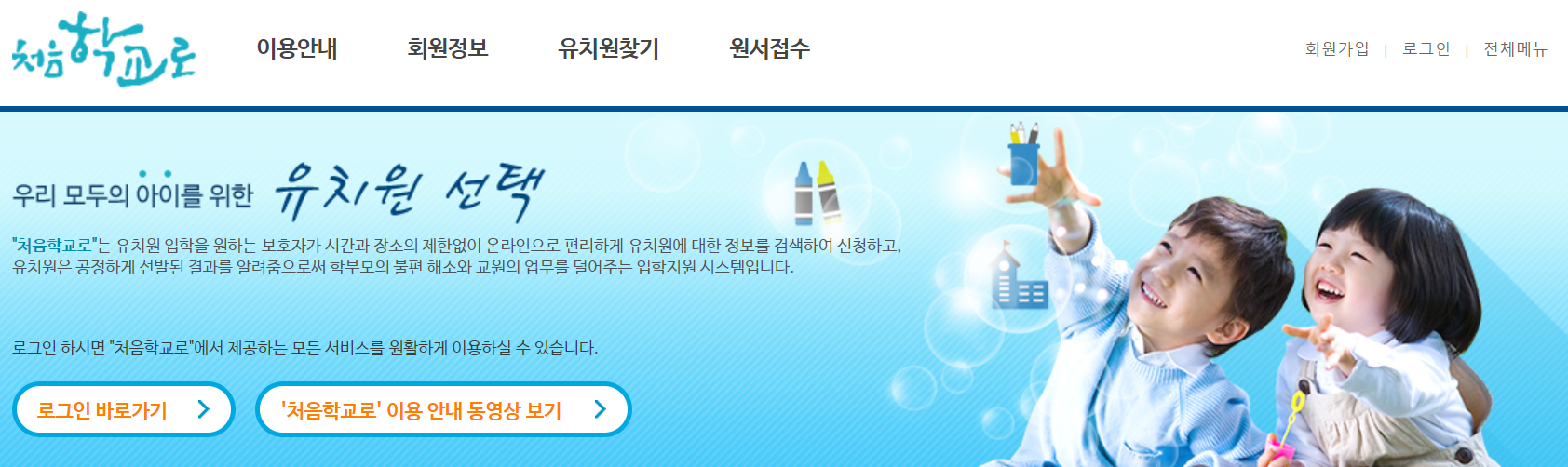 이는 유치원입학을 원하는 보호자가 시간과 장소의 제한 없이 온라인으로 편리하게 유치원에 대한 정보를 검색하고 신청하고 또한 유치원의 경우도 공정하게 선발된 결과를 알려줌으로써 각종 불편 해소와 교원의 업무를 덜어주는 시스템이네요. 한번 이용해 보는 방법을 알아보겠습니다.