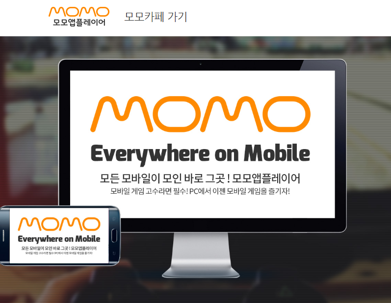 이 화면이 바로 모모앱플레이어 다운로드하는 화면의 사이트입니다. 하지만 실제로 받을 수 있는 곳은 없고 몇 가지 쓸데없는 게 보이기는 합니다. 크게 중요시 여기지 마시고 맨 위 상단의 제목 옆에 모모카페 가기라는 부분이 있는데요. 거기서 받으시면 됩니다. 귀찮으면 주소로 가시고요. 일단 모모카페 가기 클릭을 해줍니다.