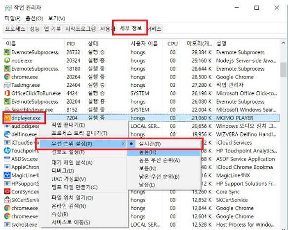실제로 모모플레이어 부분의 우선순위가 가장 높고 실시간 순위가 높은 경우 최적화가 되어서 이용이 편리하고 가능하다고 보시면 됩니다.