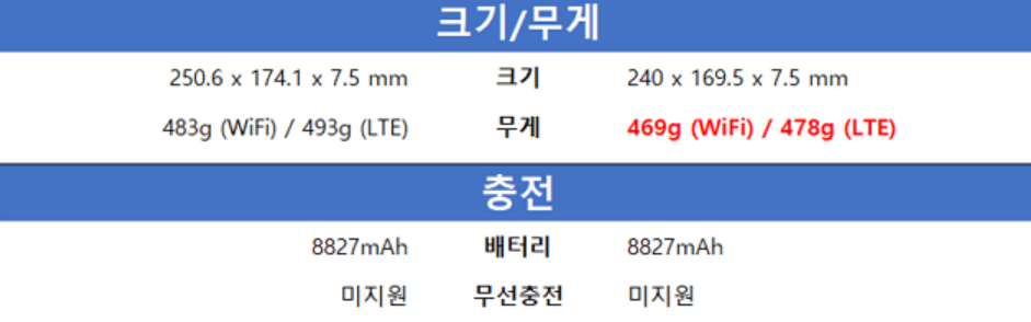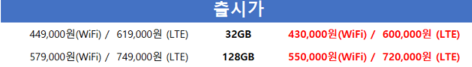 아이패드 6세대의 최저가가 갑자기 크게 치솟은 것도 아이패드 7세대가 6세대와 거의 다른 점이 없기 때문에 6세대 수요가 증가할 것으로 판단했기 때문 아닐까 생각이 든다. A11 프로세서와 USB 타입 C 단자, 애플 펜슬 2세대 정도만 지원했어도 보급형 태블릿에서 깡패 역할을 했을 것인데, 다소 아쉽게 느껴지는 부분이다. <출처: 다나와 비교>