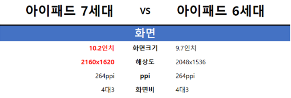 아이패드 7세대 vs 아이패드 6세대 비교해드리겠습니다.