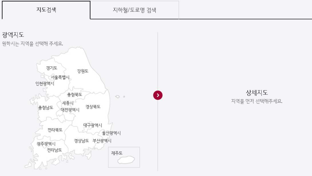 그래서 센터 찾기를 누르시면 우리나라 지도가 나오게 됩니다. 그리고 이곳에서 본인이 거주하는 곳을 클릭하시면 자신의 가까운 곳의 주소와 길 찾기, 문자전송, 현제 고객 대기상태 등을 확인해 보실 수 있습니다.