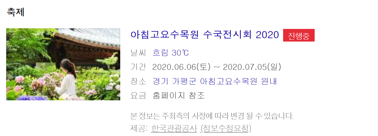 6월 축제 가볼만한 곳으로 수도권과 가까운 가평의 아침고요수목원 수국전시회를 추천드려요 실제로 6월은 꽃들의 왕인 수국이 정말 만발하는 곳중에 하나이기도 하구요.
