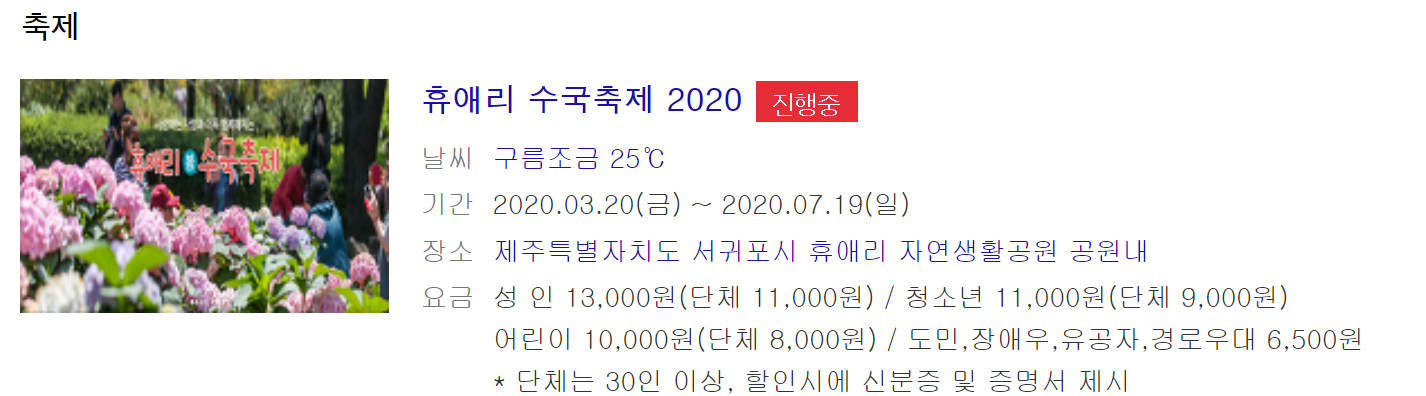 6월은 초여름이지만 지금은 그냥 여름이라고 해도 못지 않을 온도를 가지고 있는데요. 일단 난 비행기좀 타보고 싶다고 하신다면 현 시점에 외국가는 건 어렵다 보니 제주도의 휴애리 수국축제를 가볼만한 곳으로 추천드립니다