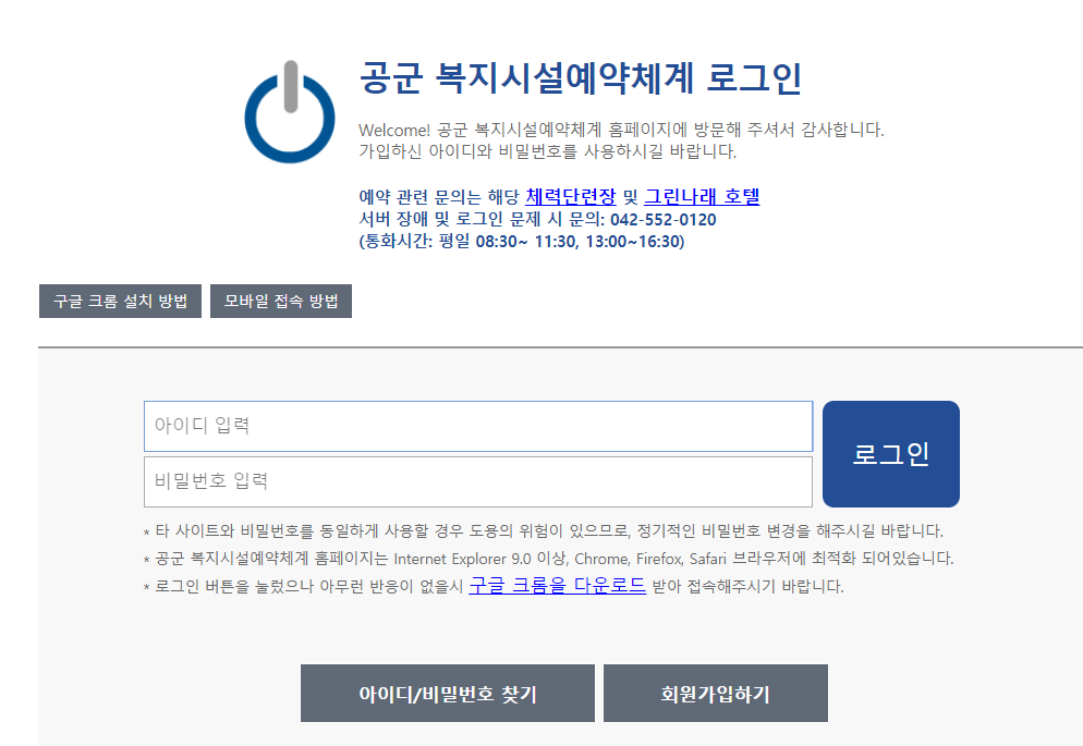 참고로 구글의 크롬 버전에 최적화되서 예약하는데 있어서 가장 유리하구요. 그리고 아이디가 없으신분들은 회원가입을 통해서 홈페이지를 이용하실수가 있습니다.