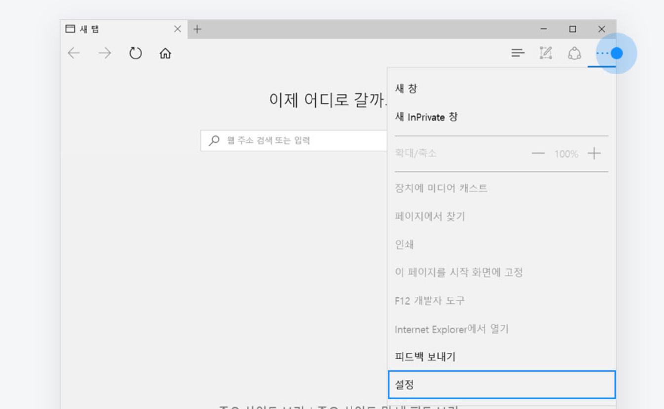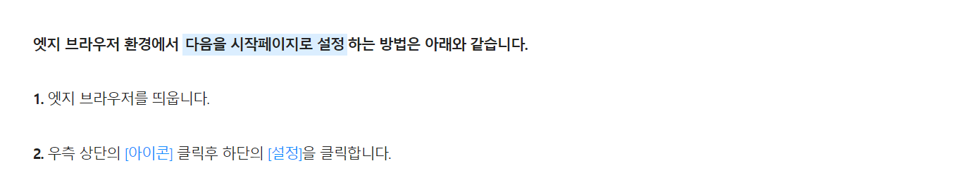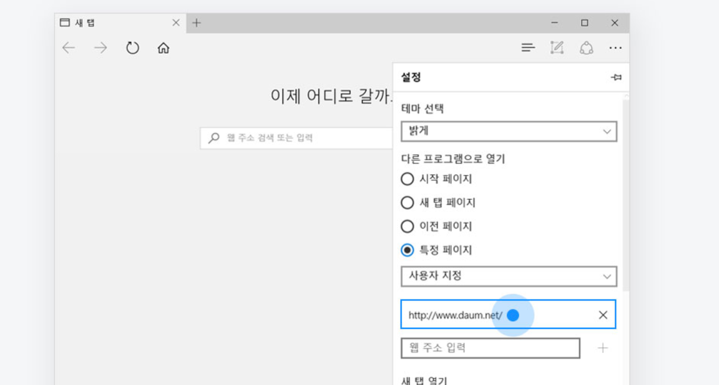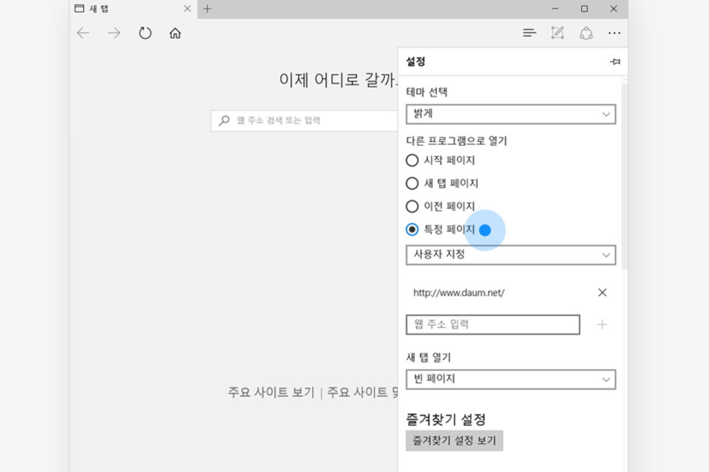 엣지 브라우저에서 다음을 시작페이지로 지정 하기