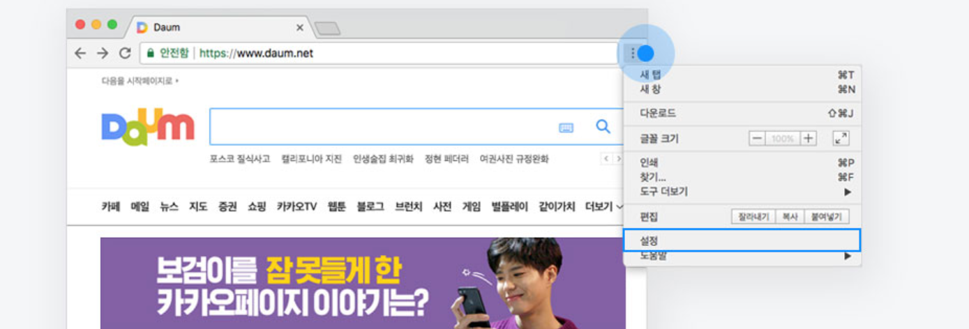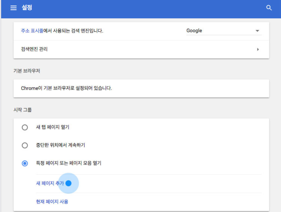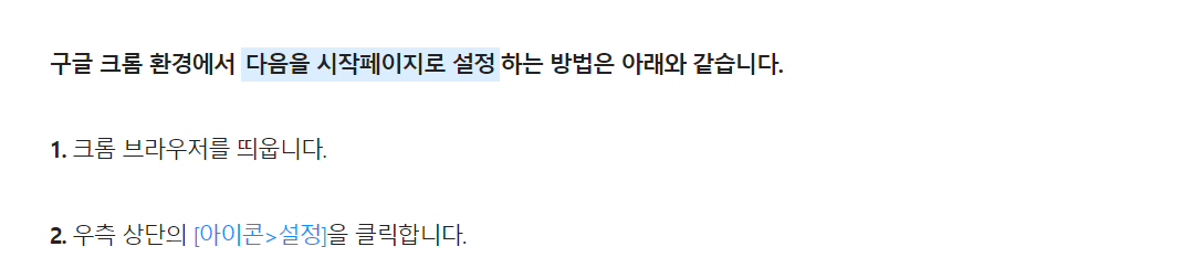 다음을 시작페이지로 설정하기 크롬에서 지정